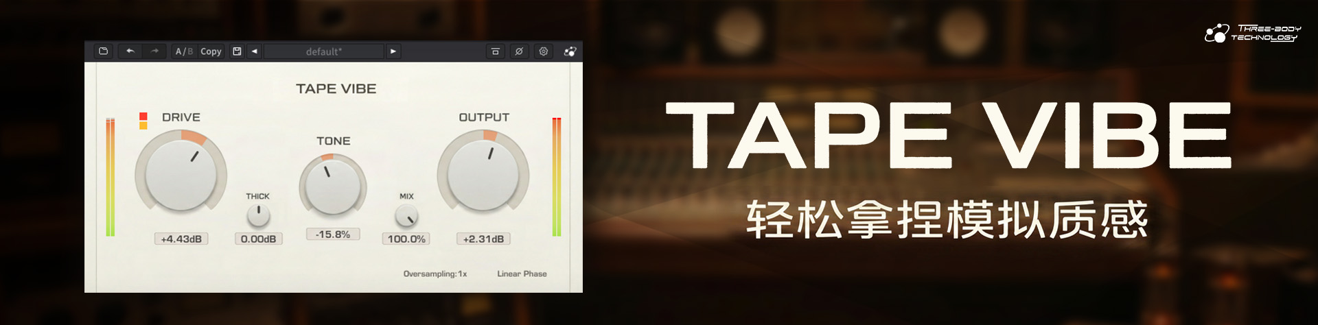 一款主打轻中度染色的饱和器(Saturator),为你的声音注入复古的磁带质感。