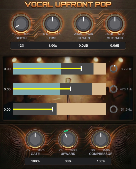 In the Compressor stage, spectral processing detects and tames sharp, poking resonances without crushing the life out of the entire band. In the Upward stage, spectral processing seeks out and lifts spectral dips, filling in the sonic "holes" to reveal hidden harmonic richness. Whether you need precise resonance suppression or broadband glue, simply drag the SPEC slider to find the perfect balance—delivering a fuller, smoother sound that remains musically expressive and never harsh.