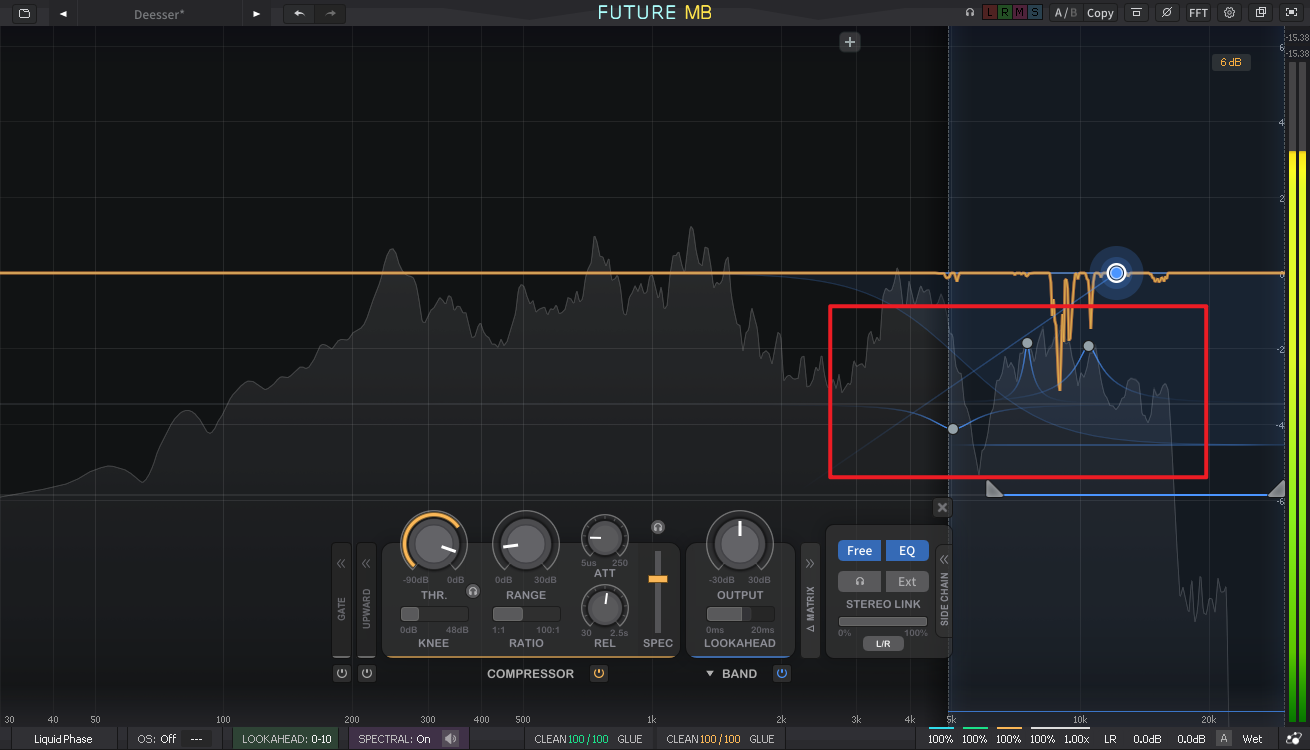 Future MB dissolves the boundary between dynamics and tone. By activating Spectral Mode, you unlock a fluid continuum where Time-Domain and Frequency-Domain processing coexist. Instead of forcing you to choose between standard compression and spectral shaping, Future MB lets you glide effortlessly between them with a single control.